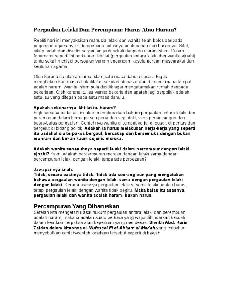 Http Upimkmpk Weebly Com Uploads 2 5 4 9 25498484 Batas Pergaulan Lelakiper Dr Anisah Pdf from Find more similar flip pdfs like batas2 pergaulan. Aurat lelaki dan perempuan berbeza kerana mereka berbeza di sudut tubuh badan dan naluri. Justeru itu, pergaulan antara lelaki dan perempuan amatlah dititik beratkan di dalam islam. Apa keistimewaan jadi perempuan??sayang ibu 3x dan sungguh seorang lelaki menyentuh khinzir yg berlumuran lumpur itu lebih baik baginya drpd hendak menyentuh wanita yg tidak halal baginya hr thabrani. Pergaulan disebabkan urusan jual beli: Oleh sebab itu maka bagi lelaki dan permpuan yang bukan muhrim tidak dibenarkan bergaul bebas. Aurat perempuan wajib ditutup ketika bersama perempuan islam dan lelaki mahramnya ialah dari pusat hingga lutut. Pergaulan perempuan dan lelaki kerana keperluan syarie.