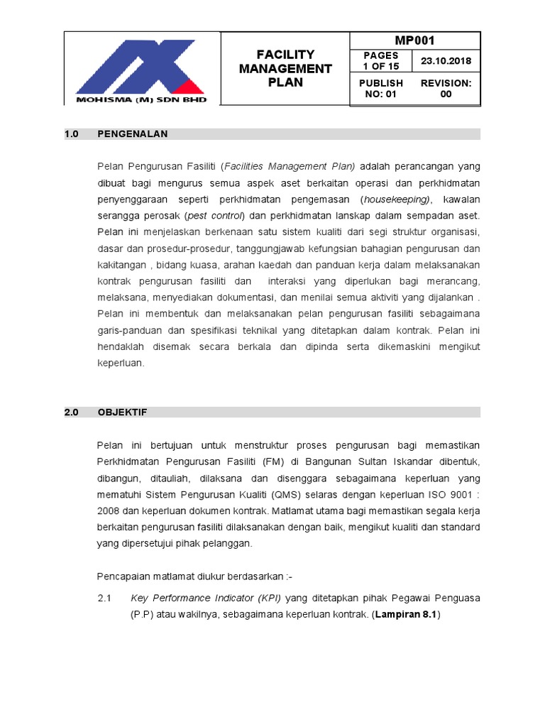 Pdf pengurusan fasiliti dalam penyelenggaraan bangunan amalan kualiti keselamatan dan kesihatan ukm azzila hasnur academia edu. 2.9 pengurusan penyenggaraan fasiliti bangunan di sektor awam 35 2.10 fasiliti bangunan kerajaan di wilayah persekutuan kuala lumpur 38 2.11 ringkasan 39 3.0 kerangka keberkesanan pengurusan penyenggaraan fasliti bangunan di sektor awam 3.1 pengenalan 41 3.2 kajian literatur pengukuran pengurusan penyenggaraan 42 3.3 kepentingan keberkesanan pengurusan penyenggaraan 42 3.4 model pengukuran keberkesanan pengurusan C) penyelenggaraan pengangkutan dan telekomunikasi. 3.8.3 kandungan amalan terbaik pengurusan penyelenggaraan bangunan 102 3.9 kesimpulan 105. Pengurusan fasiliti bangunan adalah merupakan satu bidang pengurusan yang melibatkan ruang, infrastruktur, sumber manusia dan organisasi yang sering dikaitkan dengan urustadbir blok pejabat, arena, bangunan komersil, industri, bangunan pendidikan, kompleks sukan, hospital, hostel dan sebagainya. Oleh itu, kertas ini hanya menumpukan pengurusan fasiliti terhadap • meningkatkan golongan usahawan yang kompeten dalam sektor penyelenggaraan dan pengurusan fasiliti bangunan. Peranan mereka tidak hanya terhad mengurus fasiliti bangunan, tetapi membantu negara mencapai kemampanan menyeluruh. Pengurusan fasiliti dan penyenggaraan (fmm) di kompleks mahkamah kuala lumpur, wilayah persekutuan kuala lumpur. Secara umumnya pengurusan fasiliti terlibat dalam pelbagai disiplin dan aktiviti yang boleh diguna pakai oleh semua organisasi sama ada sektor awam atau swasta. Muhammad helmey bin abd aziz tajuk disertasi / laporan : Kaedah penyelenggaraan pembaikan menjadi keutamaan dijalankan B) penyelenggaraan kemudahan dan peralatan.